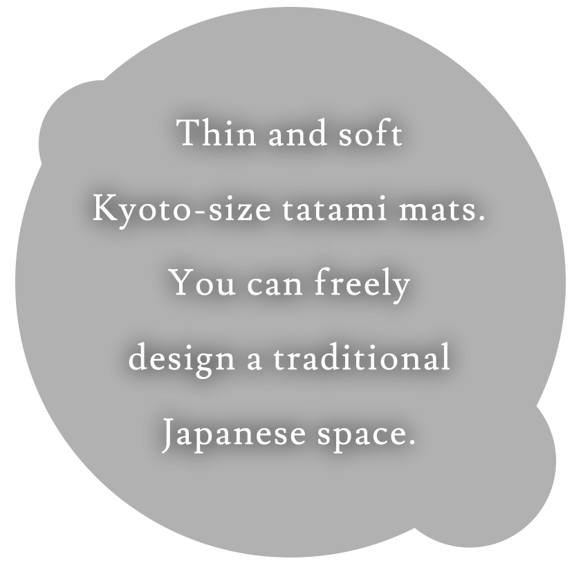 It is the same size as the tatami mats used in traditional tea rooms, and is suitable for practicing chado, the way of tea. Even if you don’t have a traditional tea room or a Japanese traditional room, you can easily create one by setting Usu-Yawa TATAMI mats on wood flooring or carpeted spaces.